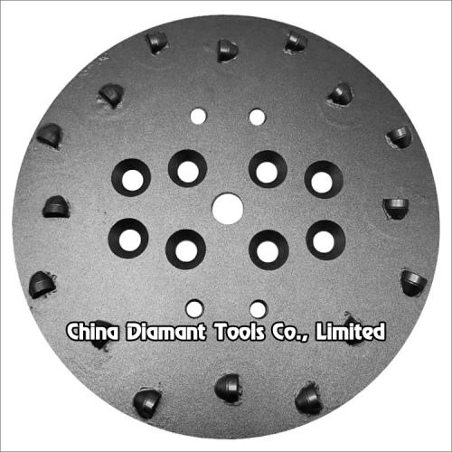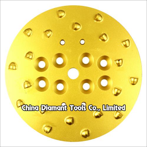This 250mm PCD grinding plate with and multi-hole and 12-20pcs 1/2 round PCD segments design fits to most of the single head grinder in the market, such as Blastrac/Trelawny grinders.