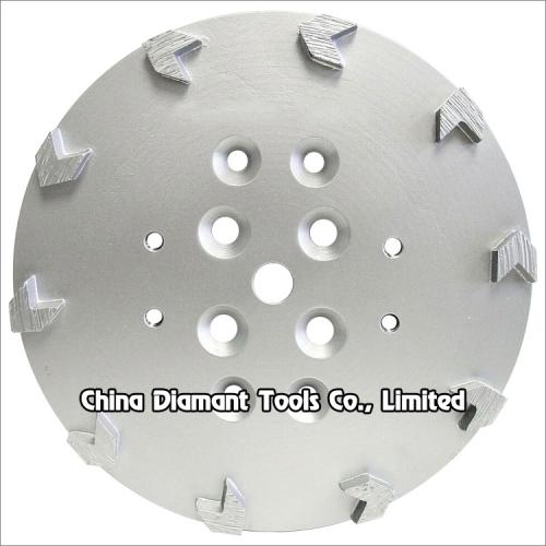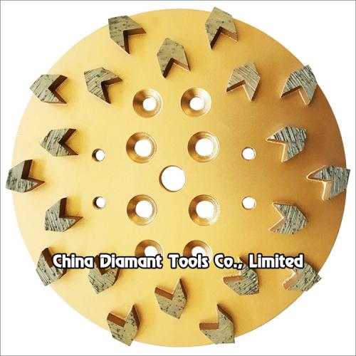 They are designed for removing hard epoxies and coatings, erasing concrete imperfections, leveling uneven spots or joints and smoothing rough or patched concrete surfaces. It has 10-20pcs arrow shape diamond segments and it is very high efficient for grinding deep on the concrete terrazzo surface.