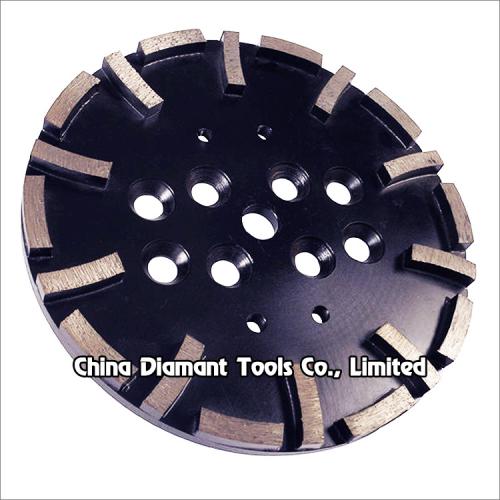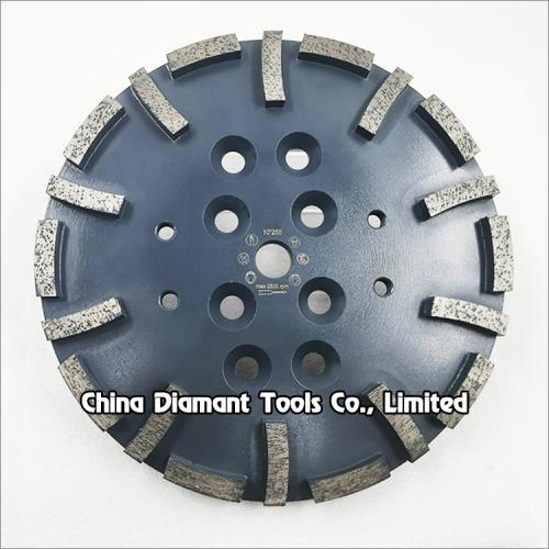 They are designed for removing hard epoxies and coatings, erasing concrete imperfections, leveling uneven spots or joints and smoothing rough or patched concrete surfaces. It has 10-20pcs curved shape diamond segments and it is very high efficient for grinding deep on the concrete terrazzo surface.