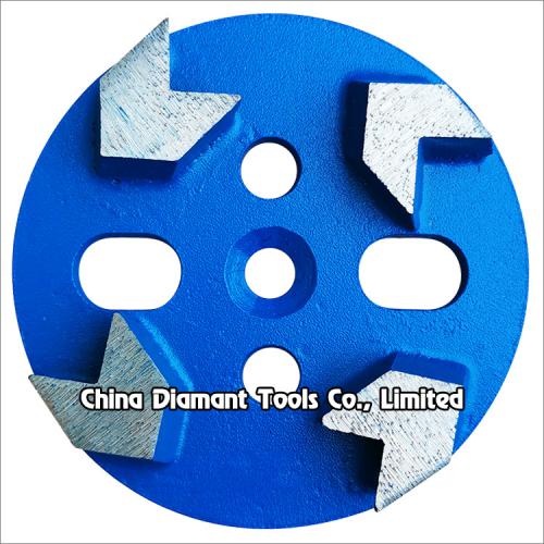The magnetic diamond grinding discs with 4pcs arrow metal bond segments are mainly used for leveling, coarse grinding and fine grinding preparation or old floor renovation before polishing on various concrete, terrazzo, stone floor.