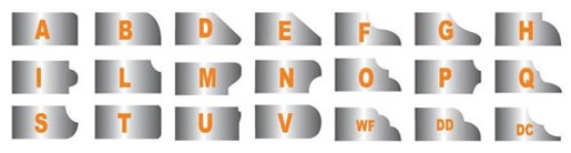 For example: A30 = A Shape with 30mm thickness, B20 = B Shape with 20mm thickness