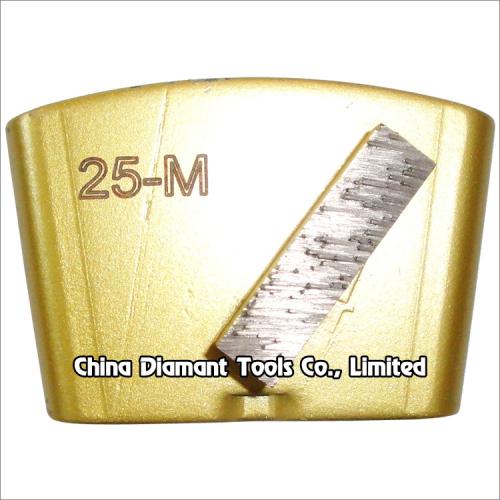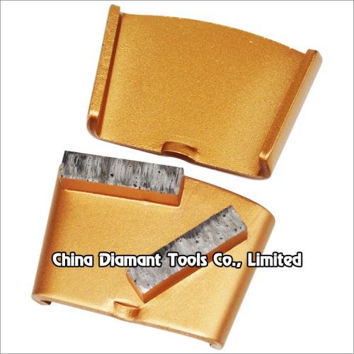 This type diamond grinding shoes floor grinding pads with 1 or 2pcs metal bond bar segments are usually used on EZ change plate of HTC grinder, suitable for general (concrete, terrazzo, stone) floor grinding use, while mostly they are used for paint, glue, epoxy removal and floor coating.