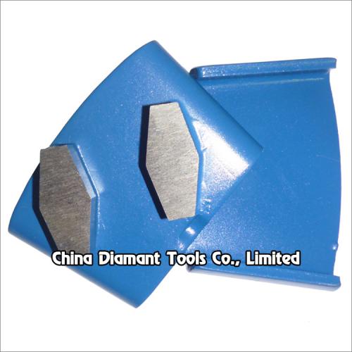 This type diamond grinding shoes floor grinding pads with 1 or 2pcs metal bond prismatic segments are usually used on EZ change plate of HTC grinder, suitable for general (concrete, terrazzo, stone) floor grinding use, while mostly they are used for paint, glue, epoxy removal and floor coating.