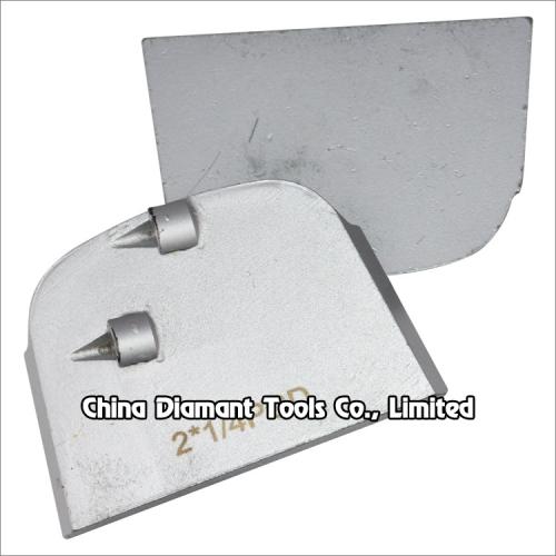 This type PCD grinding shoes floor grinding pads with 2pcs PCD segments are used on Lavina grinders and designed for removing most types of coatings such as paint, varnish, glue, epoxy, acrylic, screed residue, VCT mastic, black tar adhesive as well as thick rubber materials on the concrete terrazzo floor.