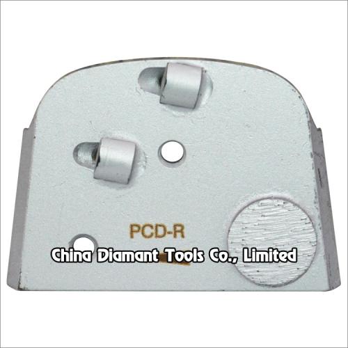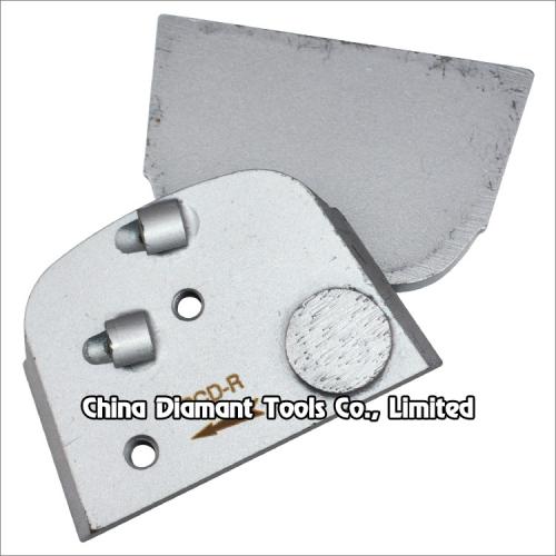 This type PCD grinding shoes floor grinding pads with 2pcs 1/4 round PCD & 1pc asisted round diamond segment are used on Lavina floor grinders for removing most types of coatings such as paint, varnish, glue, epoxy, acrylic, screed residue, VCT mastic, black tar adhesive as well as thick rubber materials on the concrete terrazzo floor.