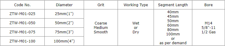 Diamond drum Wheels (also we call zero tolerance wheels) 1"(25mm) to 4"(100mm) segmented and twisted with water holes for aggressive milling grinding sink holes on the slab, kitchens, countertops, etc., which is the most effective way to grind and polish the tight radius.