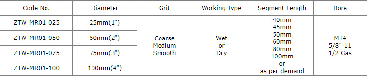 Diamond drum Wheels (also we call zero tolerance wheels) 1"(25mm) to 4"(100mm) resin filled metal bond segmented with water holes for aggressive milling grinding sink holes on the slab, kitchens, countertops, etc.,  the segments gap filled with resin, greatly improving the processing stability, reduce vibration as it tends to chatter less and provide a smoother grinding experience than metal wheels., which is a effective way to grind and polish the tight radius, ideal for both professional contractors and DIY home users.