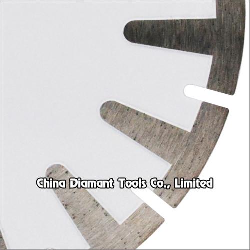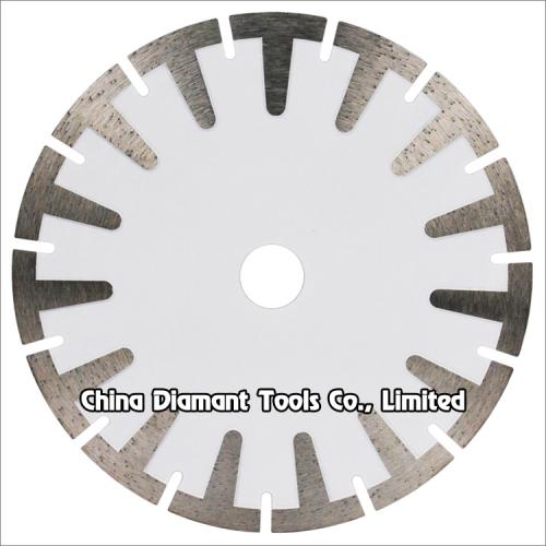 Hot press sintered diamond saw blades with T shape segments for fast dry cutting various hard, medium, soft stone such as granite, marble, sandstone, limestone, etc. without water or with less water.