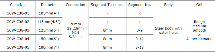 This type cup wheels with 6 or more big prismatic segments gives a distinct advantage for speed grinding. Compared to other cup wheels with 5mm thickness segments, these 8mm height segments give too much more grinding life.