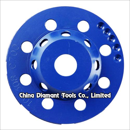 Double rows diamond grinding cup wheels with turbo segments for grinding various concrete or other masonry materials such as stone, terrazzo, bricks, etc., ideal for smoothing and shaping as well as stock removal.