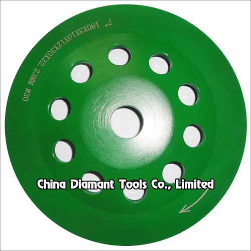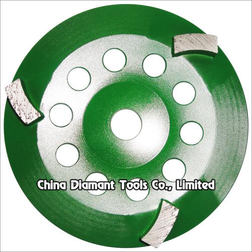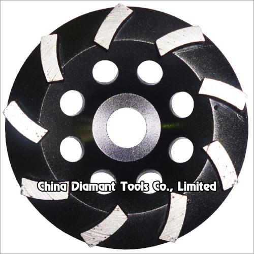 Diamond grinding cup wheels with big curved segments for grinding various concrete or other masonry materials such as stone, terrazzo, bricks, etc., ideal for smoothing and shaping as well as stock removal.