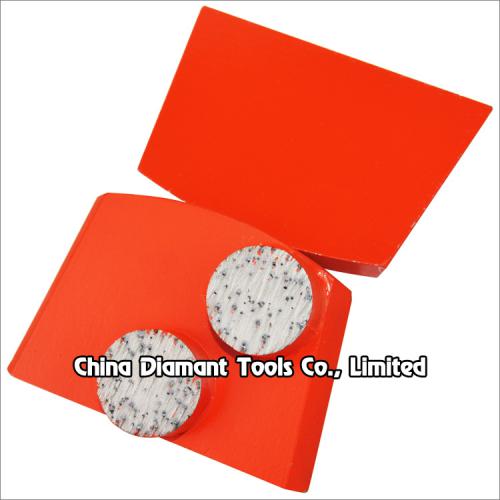 Diamond grinding shoes floor grinding pads with 1 or 2pcs metal bond round segments for Lavina grinders, suitable for general floor grinding use, it is often used for rough leveling and grinding of concrete terrazzo stone floor, such as underground parking lot, factory floor, etc., to remove the attachment on its surface.