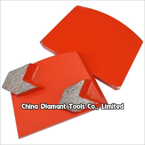 Diamond grinding shoes floor grinding pads with 1-2pcs metal bond arrow segments for Lavina grinders, suitable for general floor grinding use, it is often used for rough leveling and grinding of concrete terrazzo stone floor, such as underground parking lot, factory floor, etc., to remove the attachment on its surface.