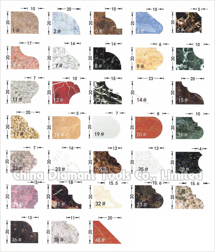 The electroplated diamond profile wheels are used for the trimming and grinding of marble, soft stones, ceramics, reinforced plastic, fiberglass, semiconductor and other composite materials. It is especially suitable for kinds of worktop slate's edge processing, usually used on large slate bridge sawing machine, also small size wheel is applicable for handheld electric tools and angle grinder.