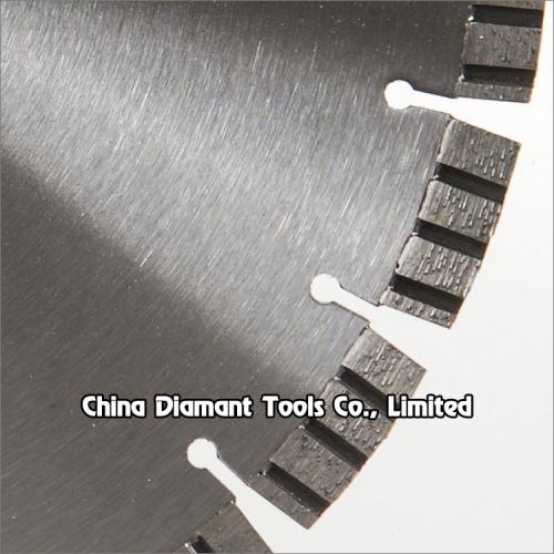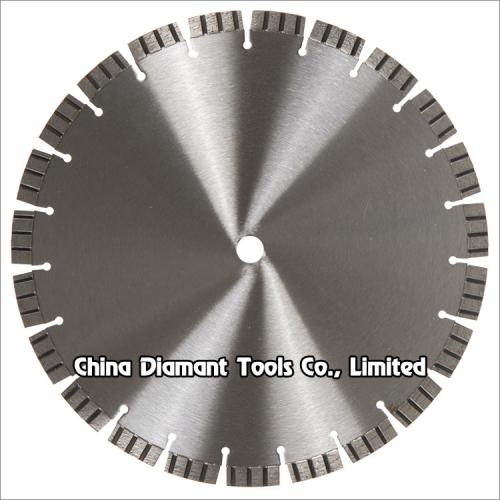 Diamond saw blades laser welded with straight turbo segments designed for cutting various concretes such as green concrete, cured concrete, concrete slabs and pipes, etc., also for cutting reinforced concrete such as road, bridge, etc.