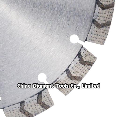Laser welded general purpose cutting diamond dry cutters with matrix & arrow groove segments for fast dry cutting various hard, medium, soft stone such as granite, marble, sandstone, limestone, etc. without water or with less water, arrow grooves on the segments is benefit for fast coolant and chip removal.