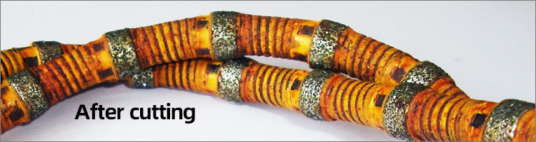 "Rubber + spring" coating type diamond wire saw with electroplated diamond beads, this technique is widely used in steel and metal construction cutting, also applicable for offshore or under-water conditions.