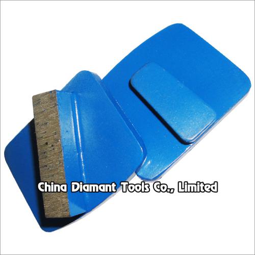 Diamond grinding shoes with 1-2pcs metal bond bar segments for redi-lock holder of Husqvarna grinders, they are high quality diamond grinding pads and often used for rough leveling and grinding of concrete/terrazzo/stone floor, such as underground parking lot, factory floor, etc., to remove the attachment on its surface.
