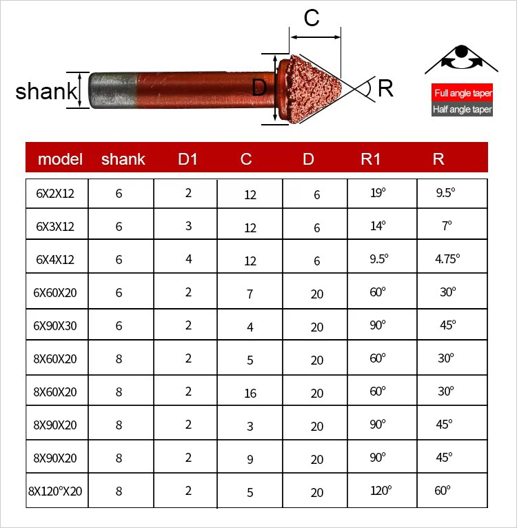 1. Conical head type: usually for engraving small letters on granite.