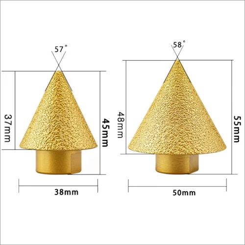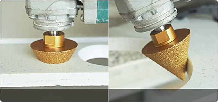 These vacuum brazed diamond bevel chamfering wheels are usually installed on the angle grinder to enlarge, shape, and round bevel existing holes in stone, granite, marble, quartz, ceramic tiles, and easily create round shape indentation to accommodate pipes or electric wire lines.