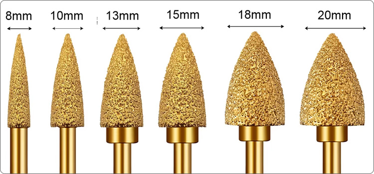 These vacuum brazed diamond grinding bits with bullet head are made of high quality diamond and usually installed on the electronic grinder, hanging mill or hand electric drill for sculpturing, dressing, grinding in ceramic, glass, stone, alloy, cast iron, iron plate, stainless steel and other abrasive materials.
